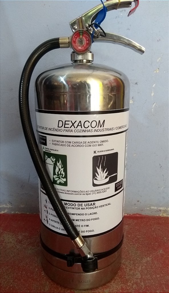 EXTINTOR CLASSE K - PARA USO EM PAPÉIS, PAPELÃO, MADEIRA, ÓLEOS E GORDURAS.